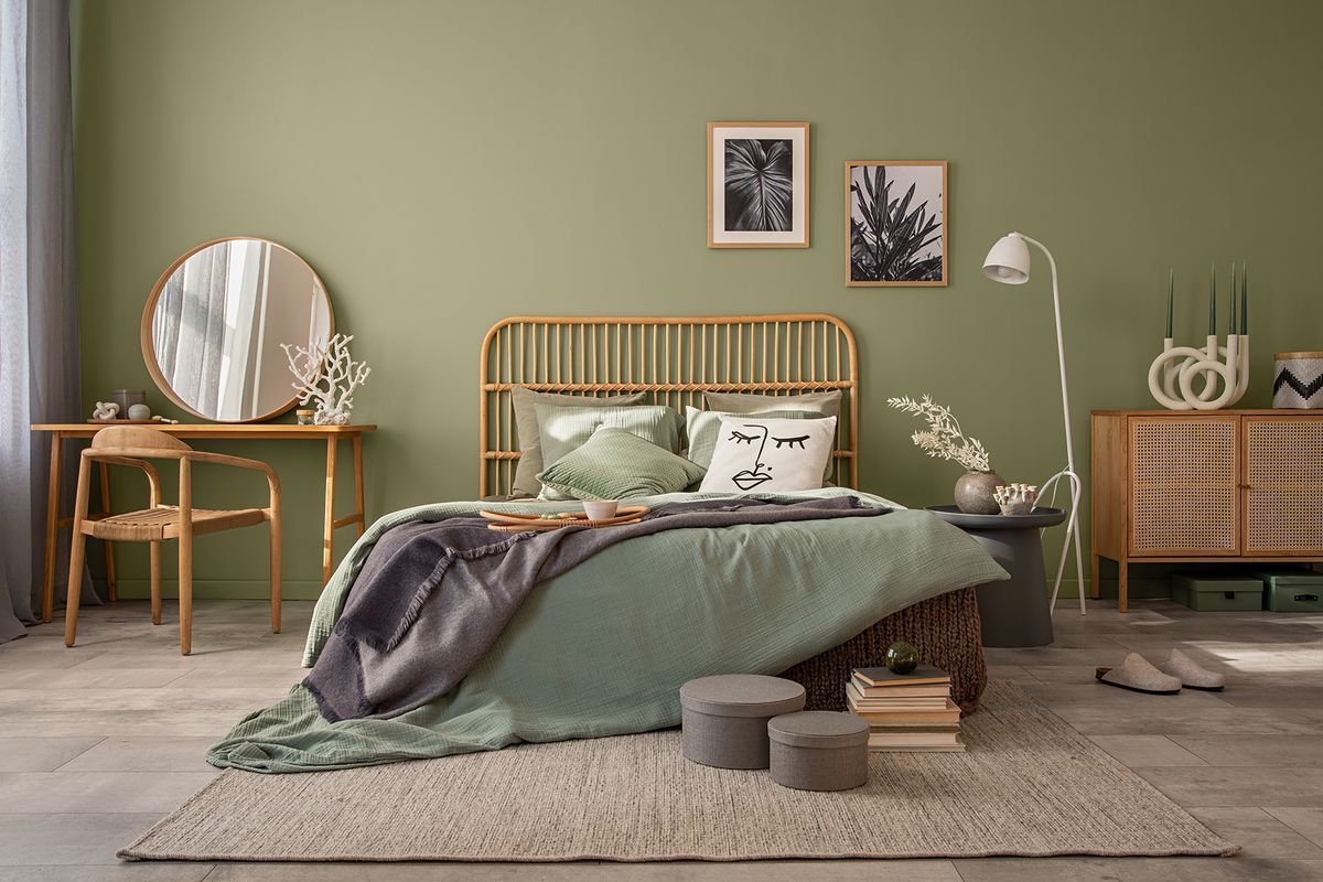 Zielona ściana w sypialni − aranżacje pokoju z zielenią